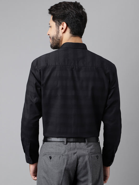 BLACK DOBBY SOLID COTTON FORMAL SHIRT