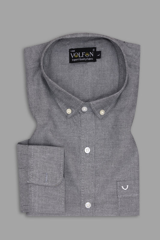 DARK GRAY COTTON SLUB WITH LYCRA SOLID SHIRT