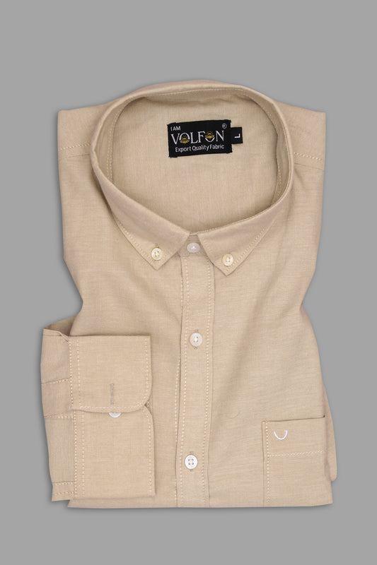 CREAM COTTON SLUB WITH LYCRA SOLID SHIRT