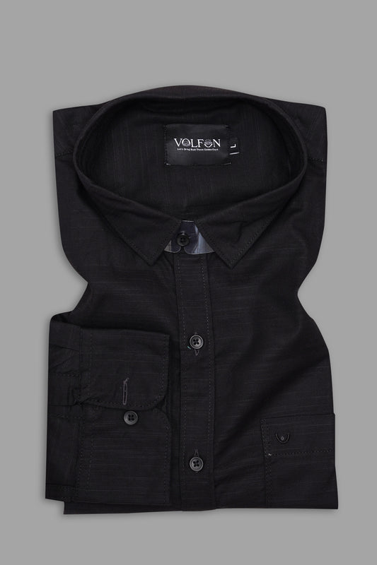 BLACK SELF SMALL STRIPE COTTON SLUB WITH LYCRA SOLID SHIRT